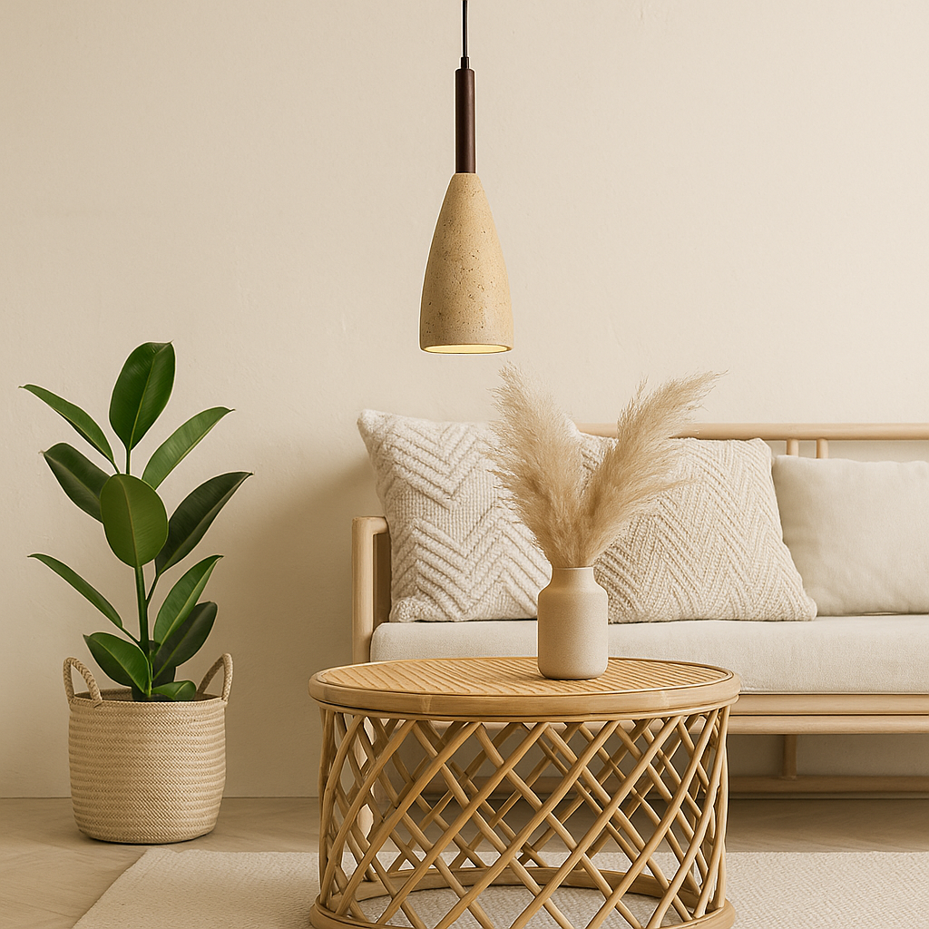 Suspension travertin et bois : invitez la nature au cœur de votre déco bohème
