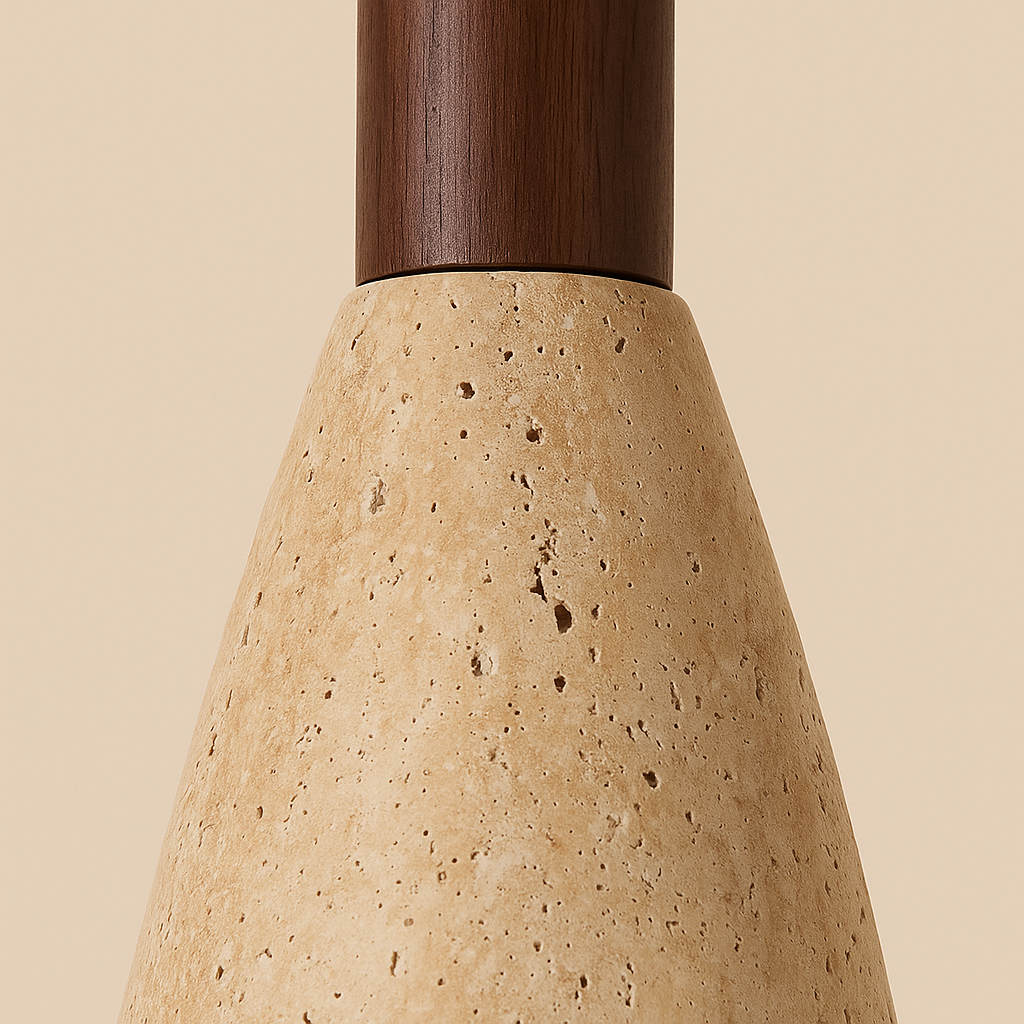 Suspension Fine en travertin et bois LED style bohème