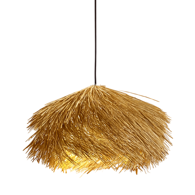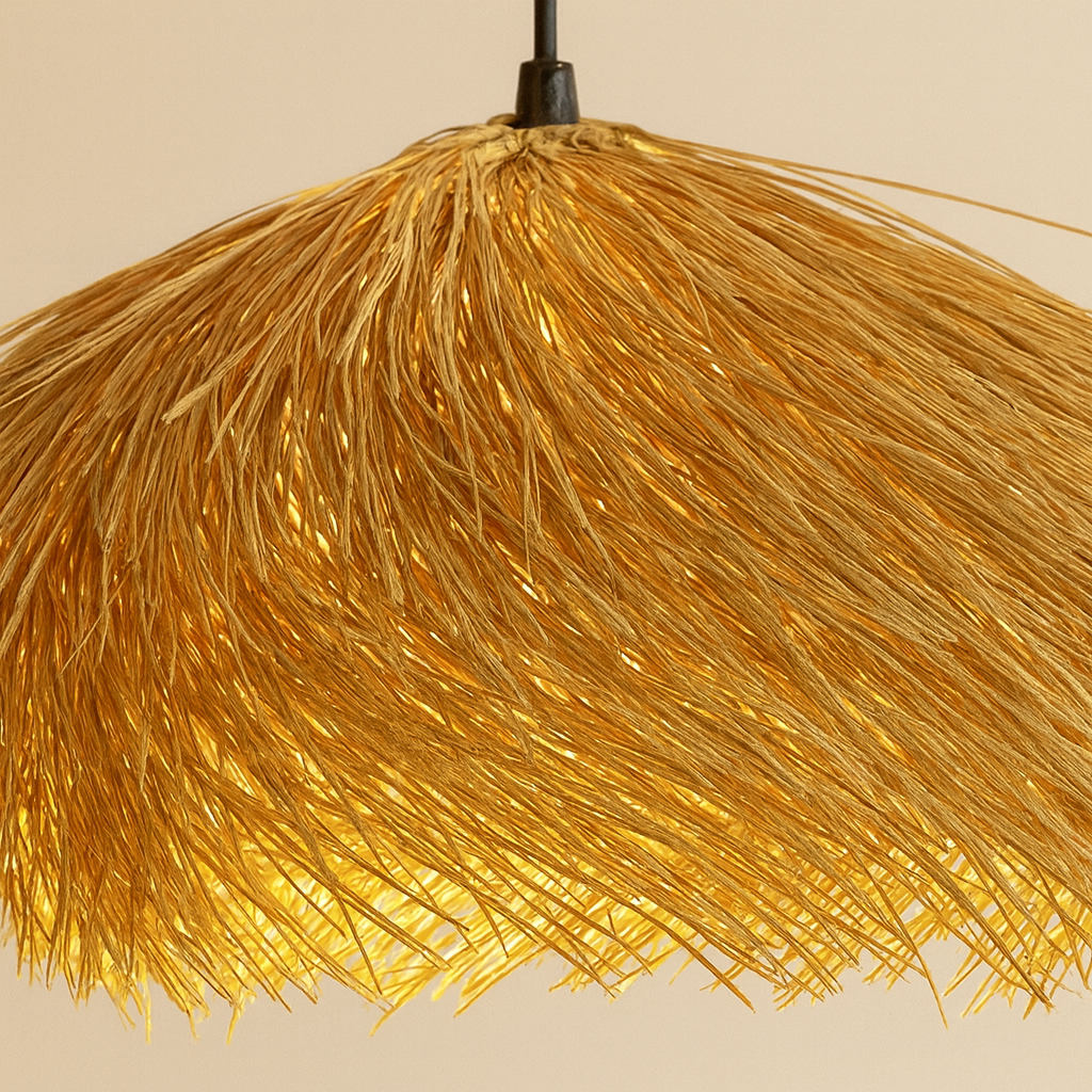 Matériau : Métal mat, paille de raphia tressée à la main, abat-jour raffia et textile