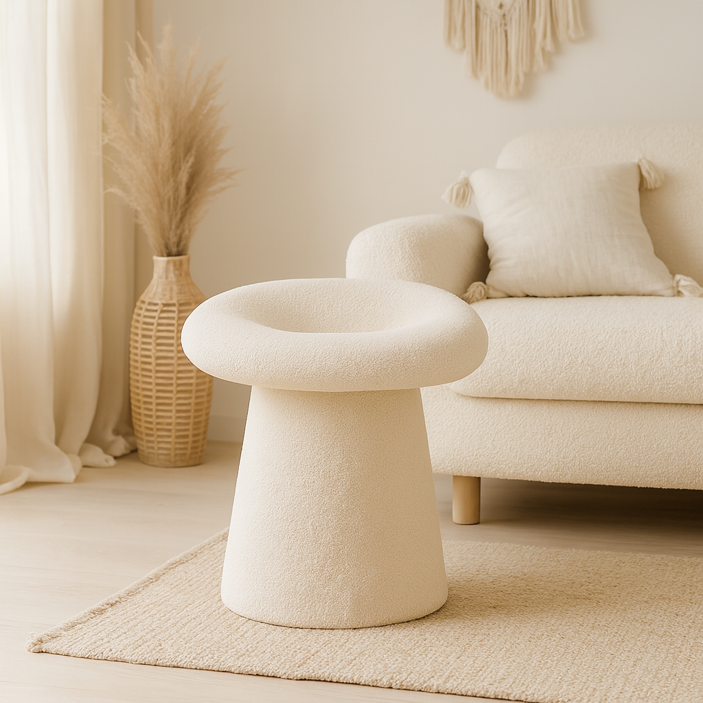 Tabouret Bohème Chic Bois et Tissu Blanc Cassé