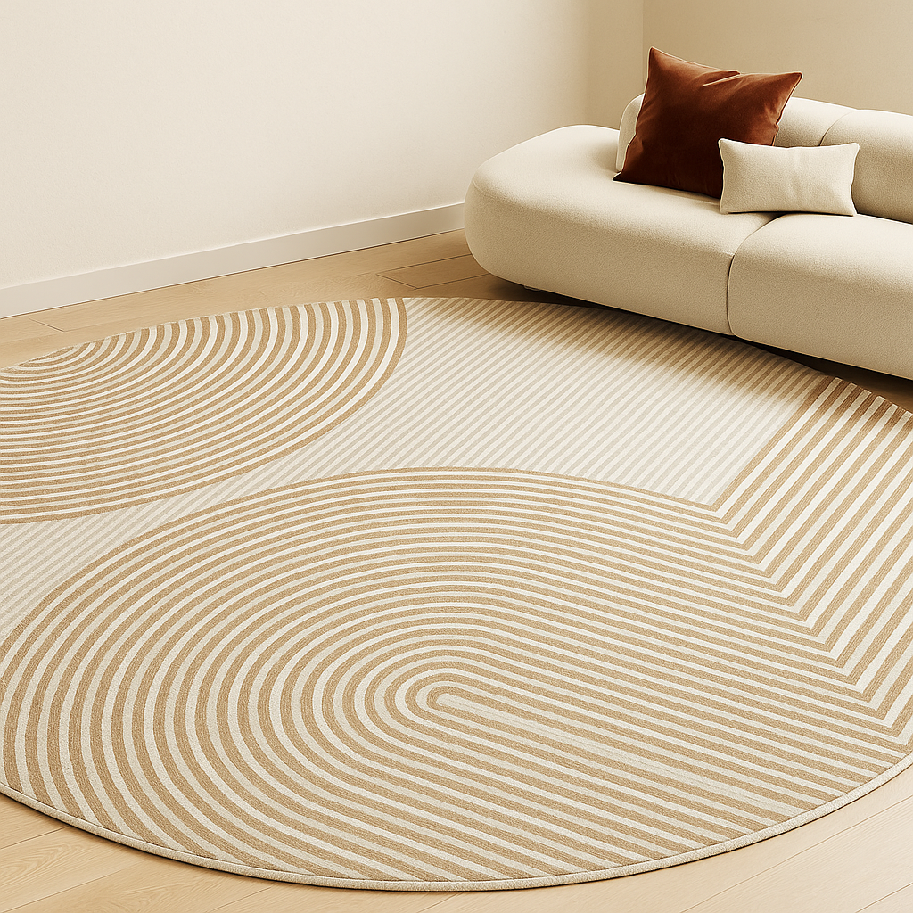 • Tapis Salon Rond Japonais Rayé Antidérapant Lavable